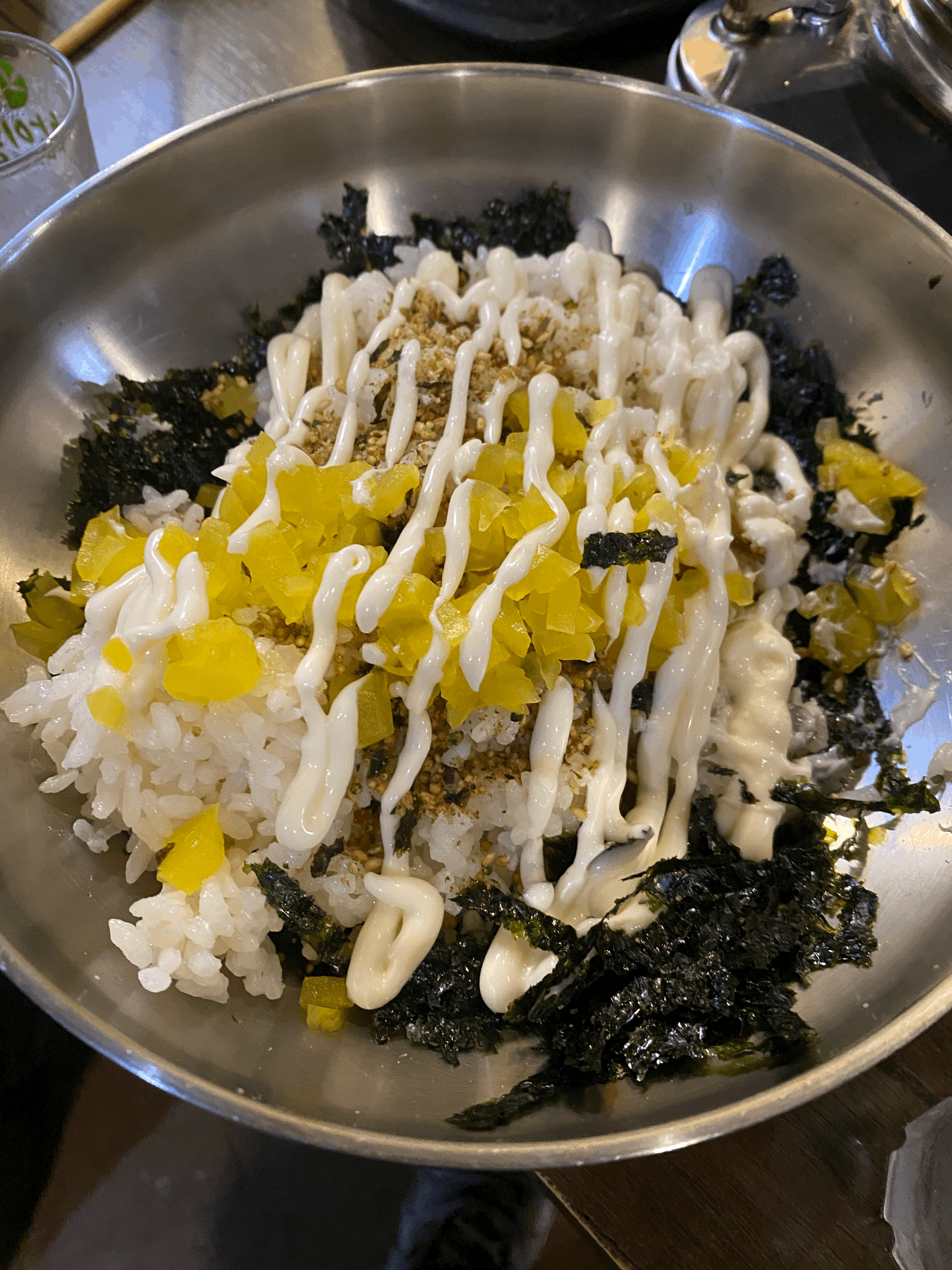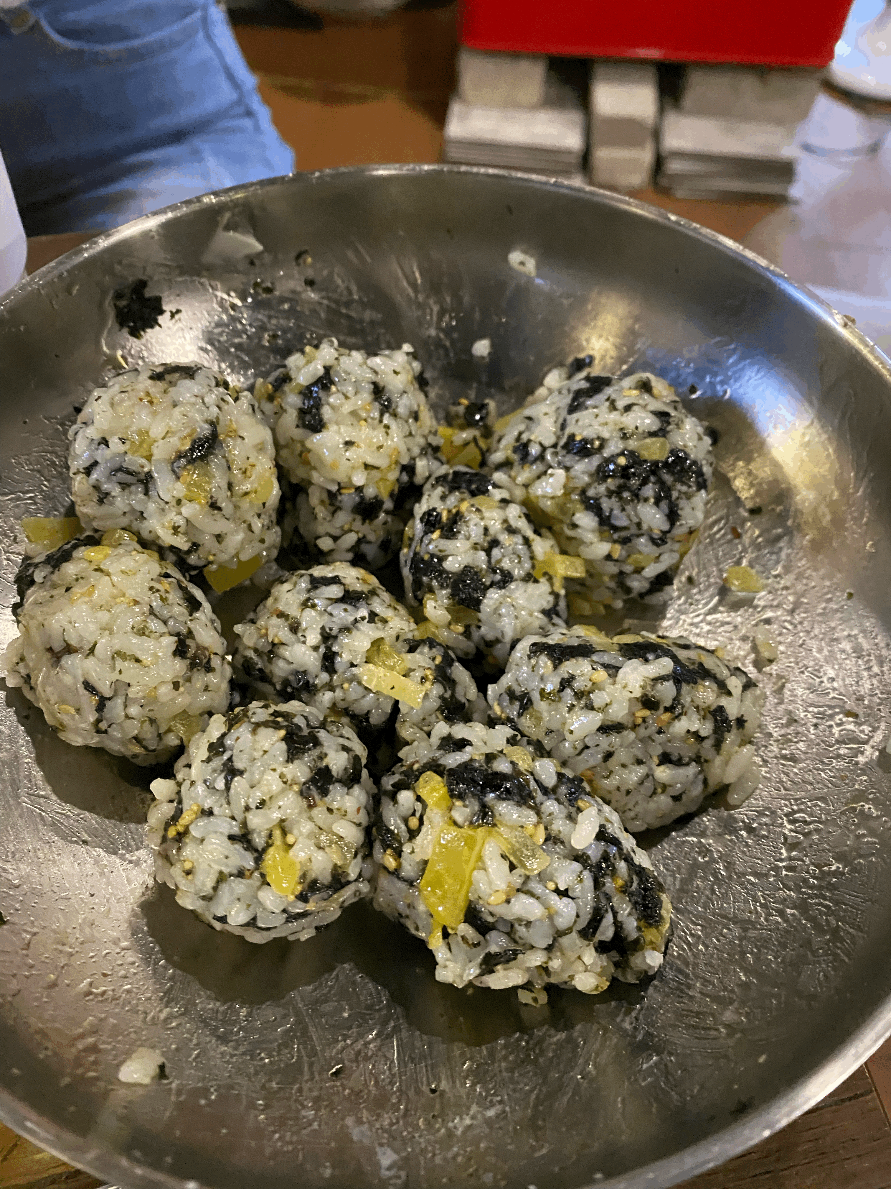 닭발 세트중 주먹밥입니다. 건더기가 알차게 들어가 있어서 너무 만족스러웠습니다. 국물 닭발을 주문했다면 국물에 적셔서 먹고 싶은 비주얼입니다.