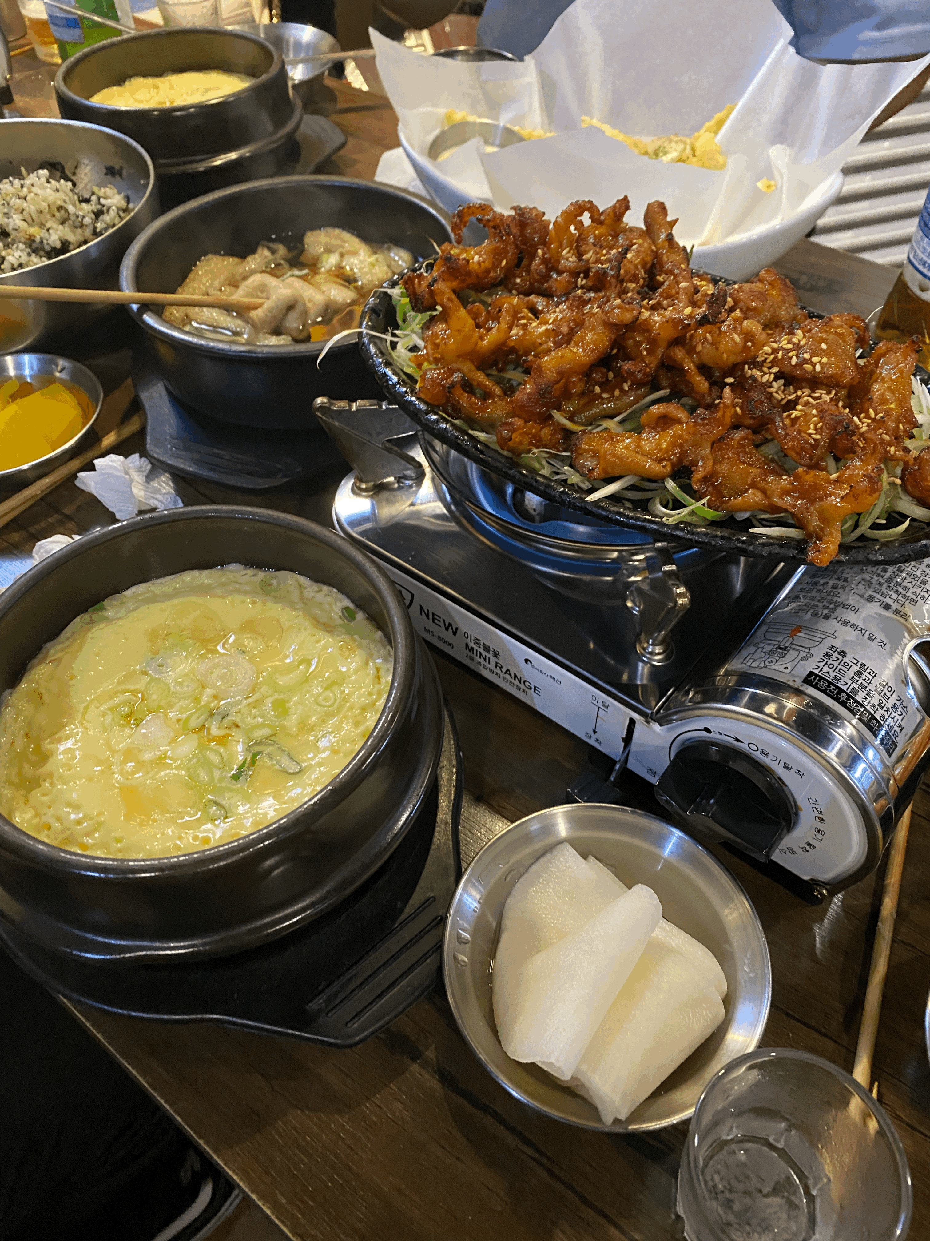 밑반찬은 단무지, 떡꼬치, 오뎅이 나오고 있고 테이블에 앉은 인원만큼 나오는 것 같아요! 오랜만에 추억을 회상하며 떡꼬치를 식신 들린 것처럼 해치웠습니다. 어묵탕은 술이 들어가기 전 해장하는 느낌.