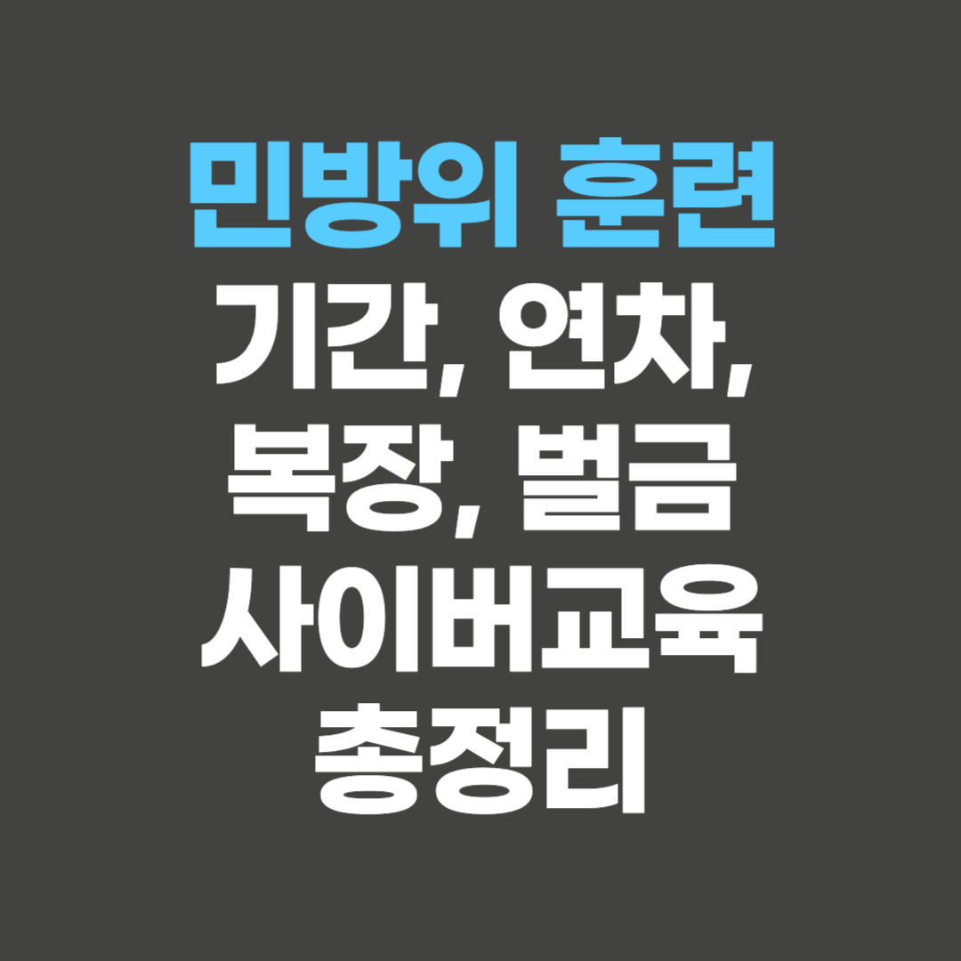 민방위는 전쟁, 재난 등의 비상사태에 대처하기 위해 조직된 것으로 시민들의 생명과재산을 보호하기 위해 구성된 조직입니다. 민방위는 국방부가 아닌 행정안전부에서 관리하고 있는데요. 만 20세부터 만 40세의 남성 중에서 민방위, 예비군이 끝난 남성이 민방위로 편성됩니다. 민방위 훈련, 기간, 연차, 복장, 사이버 교육, 불참시 벌금형 등에 대해 꼼꼼하게 확인해보시는것이 좋습니다.