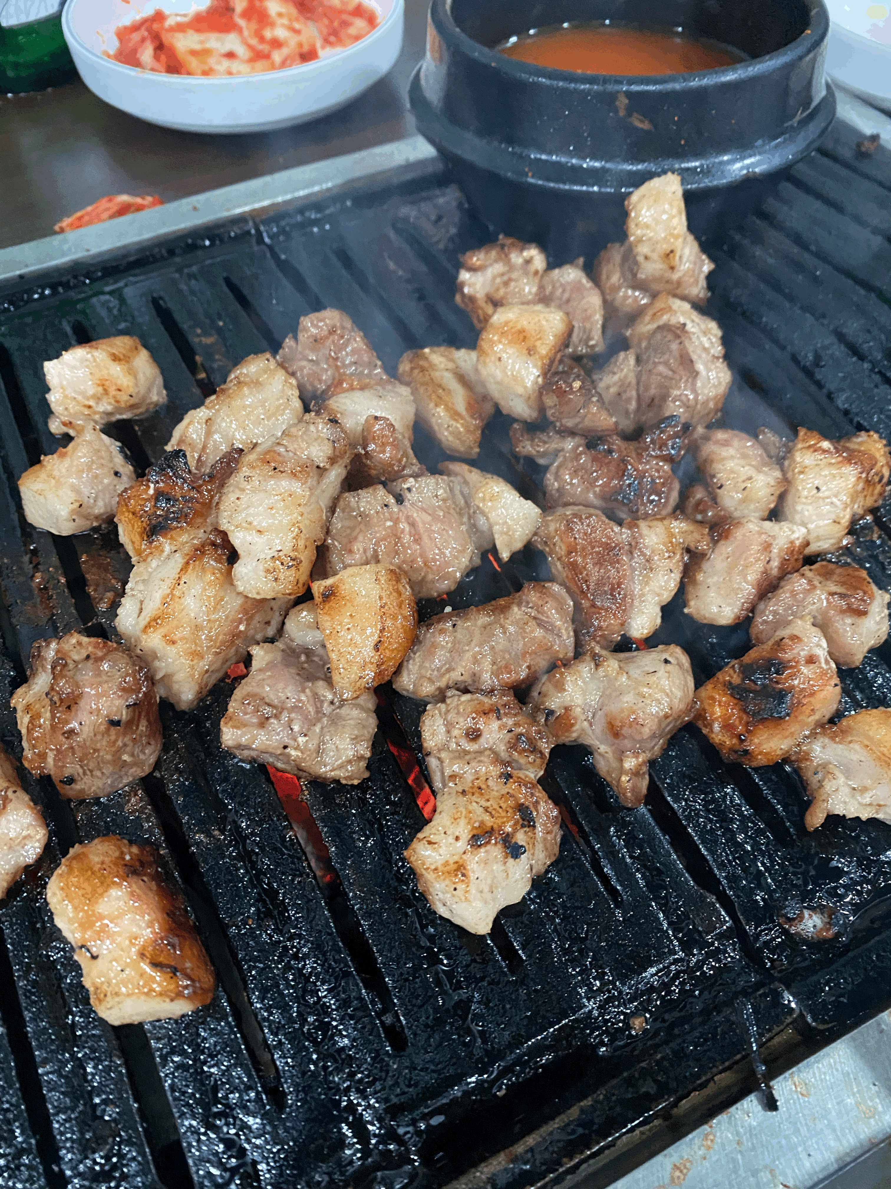 삼겹살보단 좀 더 기름진 식감입니다. 세상에 삼겹살과 뒷고기만 있다고 하면 저는 뒷고기를 선택할 것 같아요.