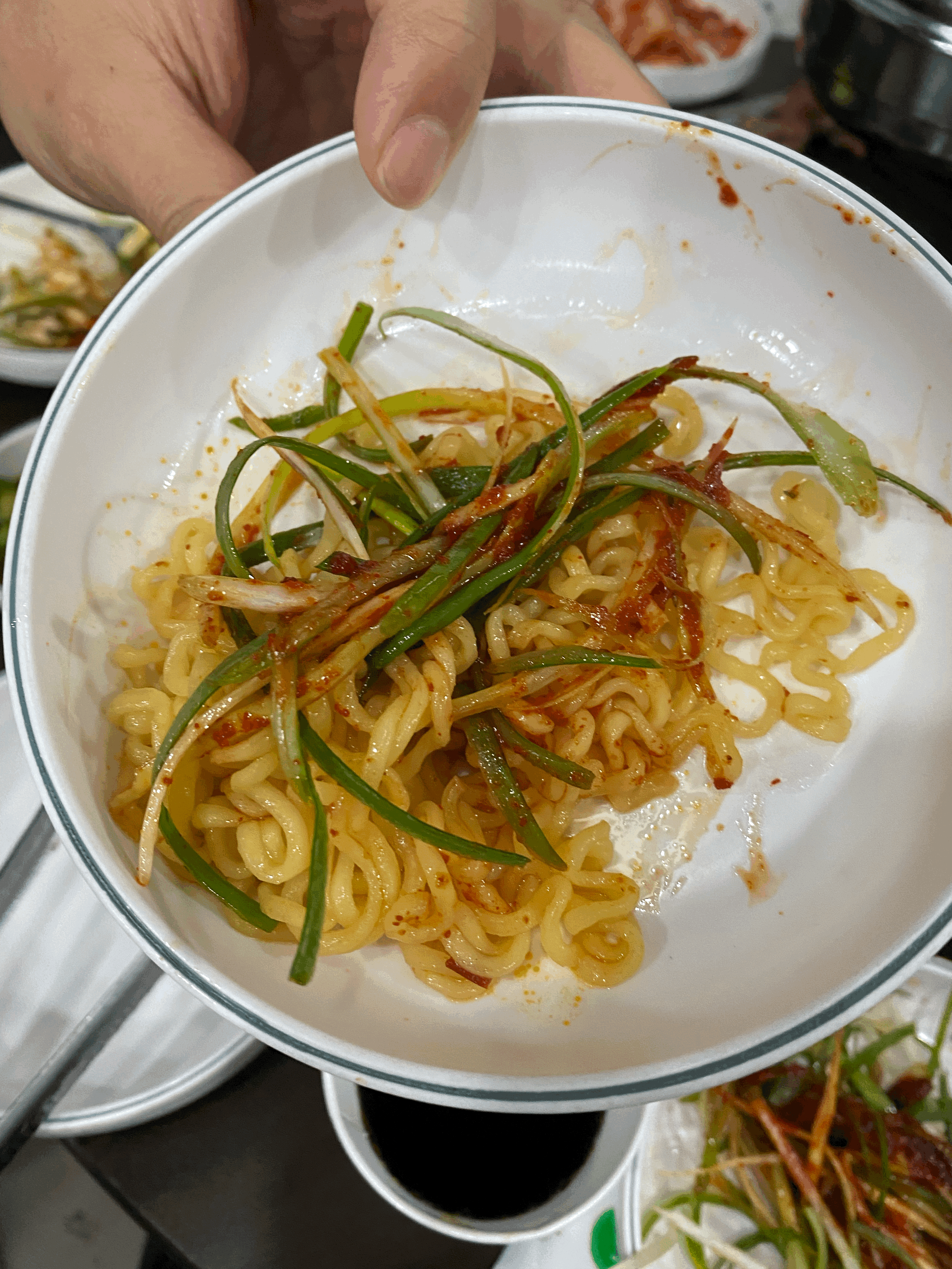 여러 번 같이 와본 지인은 밑반찬인 파채와 파채에 있는 소스로 면발을 비벼서 먹는데 맛있어요.. 먹는 것도 맛있게 먹어본 사람만 아는 것 같습니다.