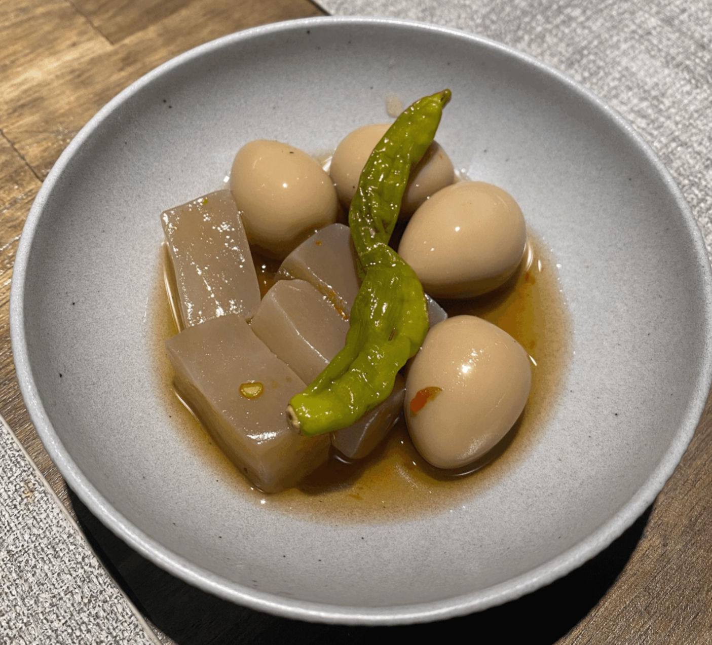주문한 독도 소주가 나왔습니다! 밑반찬은 계란과 우무가 나왔는데요. 이 특유의 간장 베이스 소스와 우무는 하루 종일 먹어도 질리지 않을 것 같습니다.